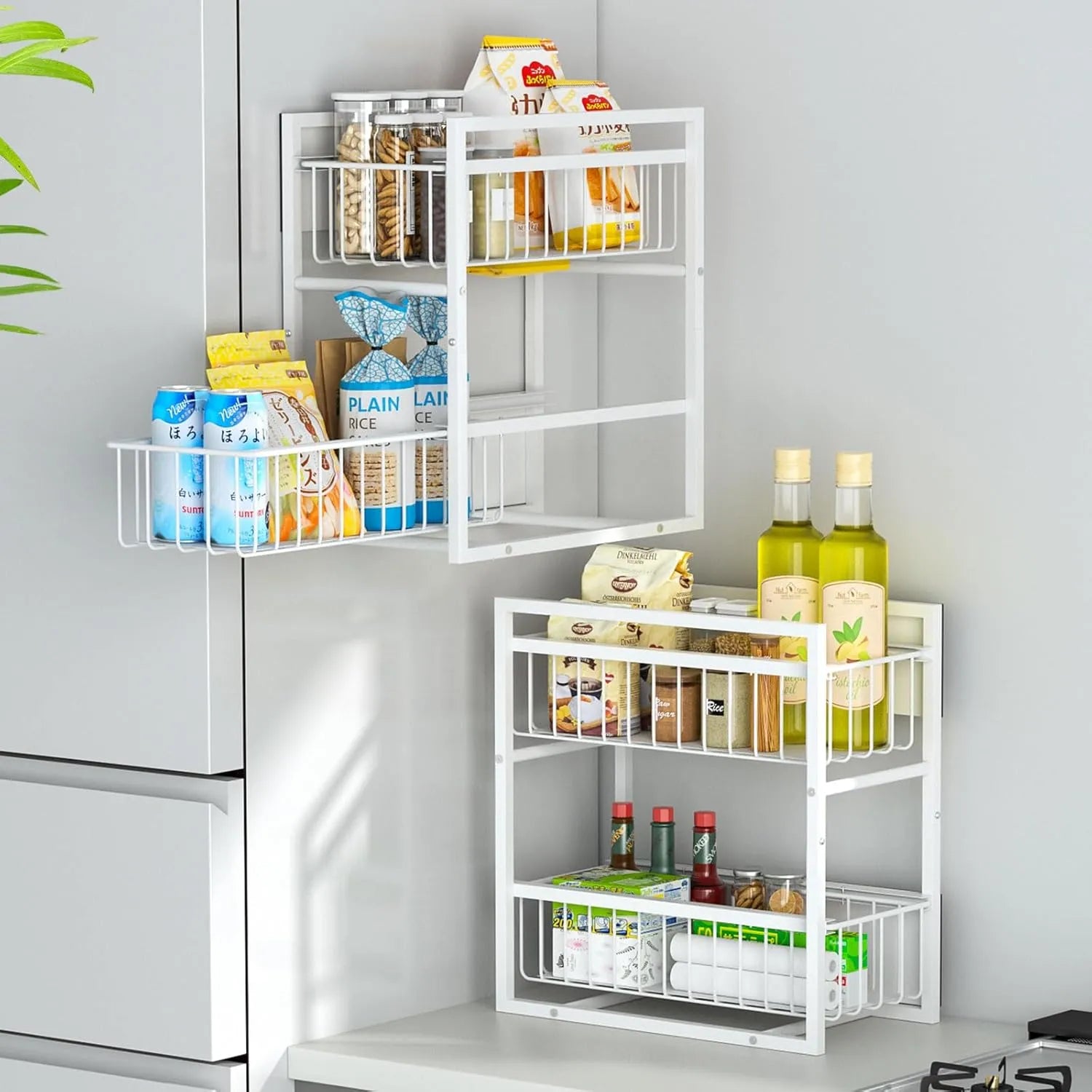 【耐荷重40kg・2Way置き】マグネット 収納 2段 引き出しラック 冷蔵庫サイドラック MS05W
