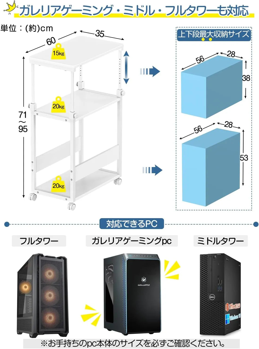 | 収納できるミドルタワーとタワー例 | GALLERIA RM7R-R56T/Magnate IM 16GB/アプライドSengoku-441238 など, 多彩なシーンで活躍:プリンター台、L字デスク、サブデスクの拡張、pcワゴン・ サイドデスク・ サイドテーブル・ パソコンワゴン・ pcワゴン・ パソコンラック・ cpuワゴン ・ pcラック |