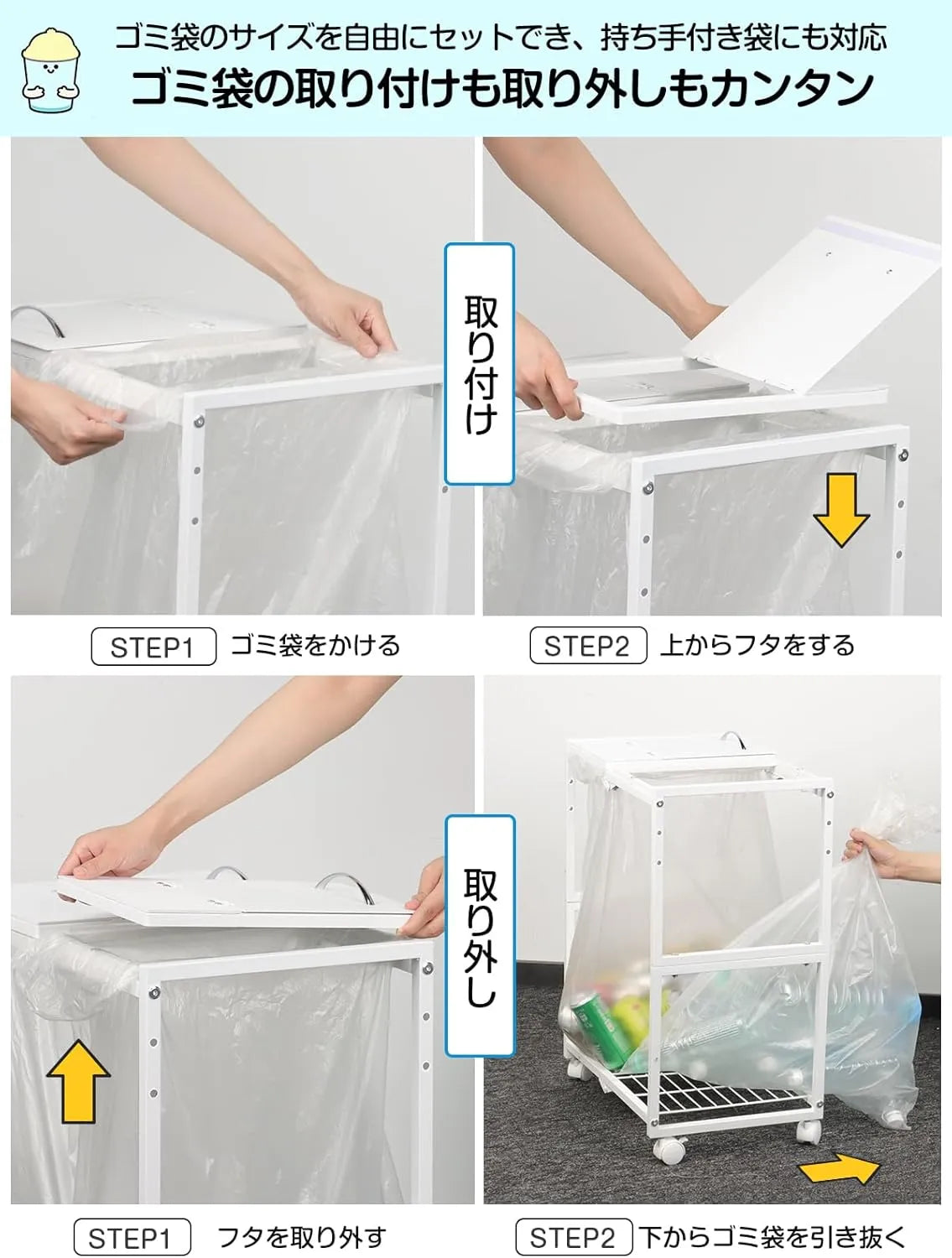 | 適応袋サイズ | 20L~55L用ポリ袋 |