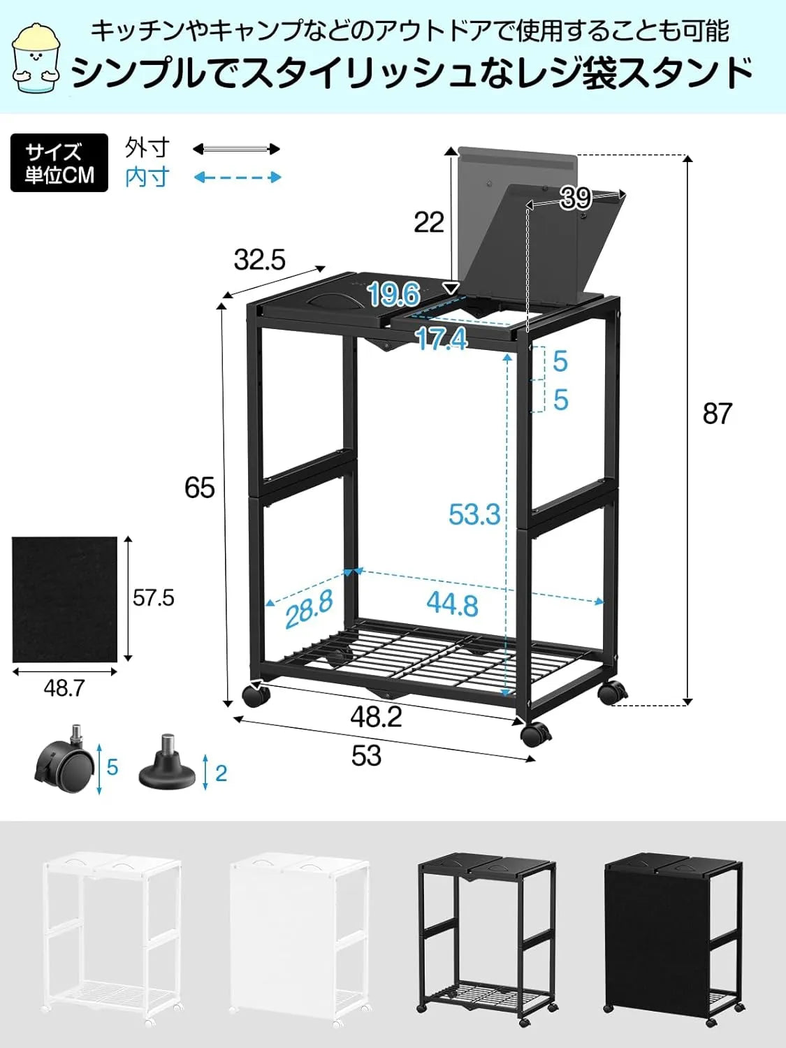 5cmピッチの3段階高さ調節により、ゴミ袋のサイズや設置スペースに合わせて最適な高さに設定できます。10L〜55Lまでの幅広いポリ袋・レジ袋に対応し、外枠がない設計で袋いっぱいにゴミを詰め込める。汚れやニオイが付きにくく、洗う手間もかからない機能性スタンド。