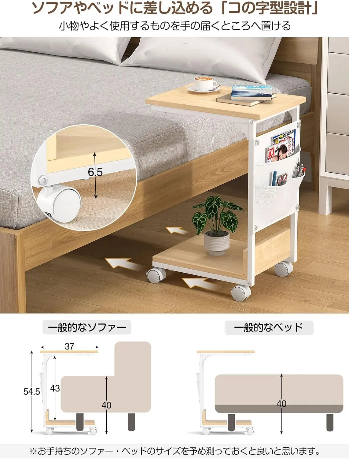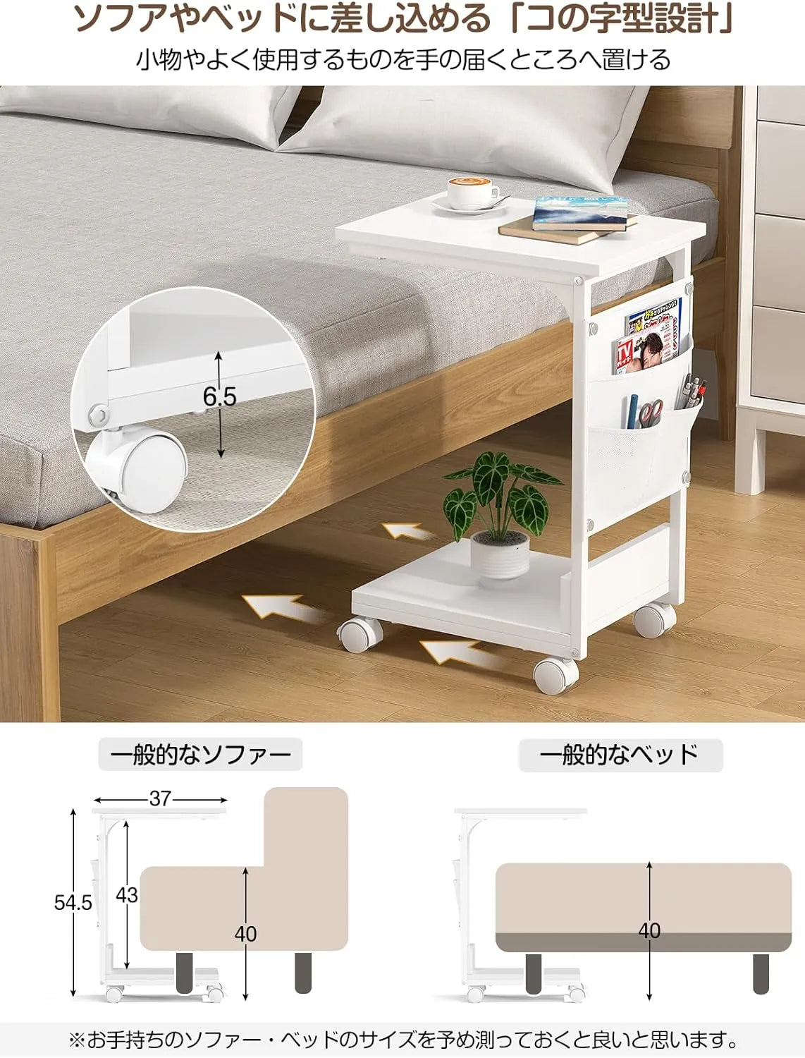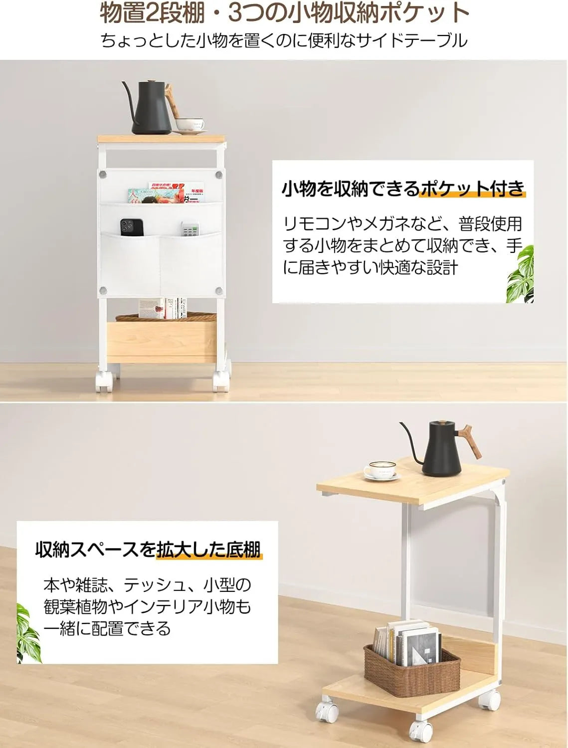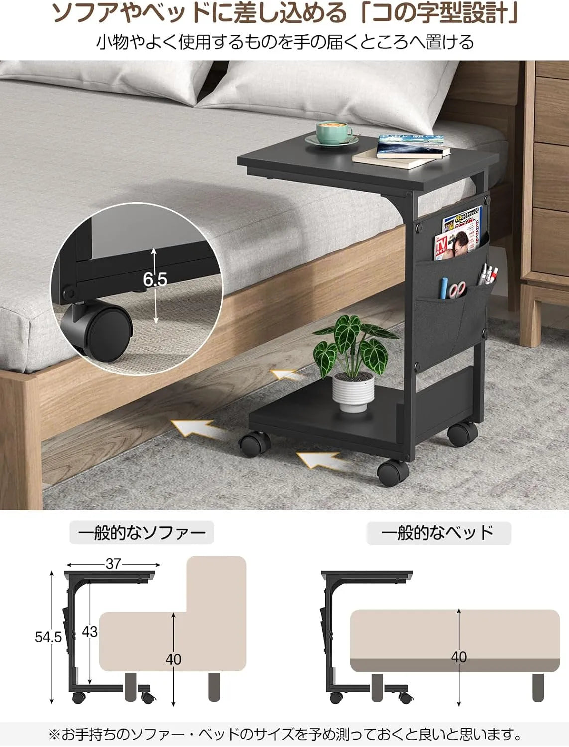 【収納袋付き】サイドテーブル ナイトテーブル|キャスター・アジャスター付き SH56W