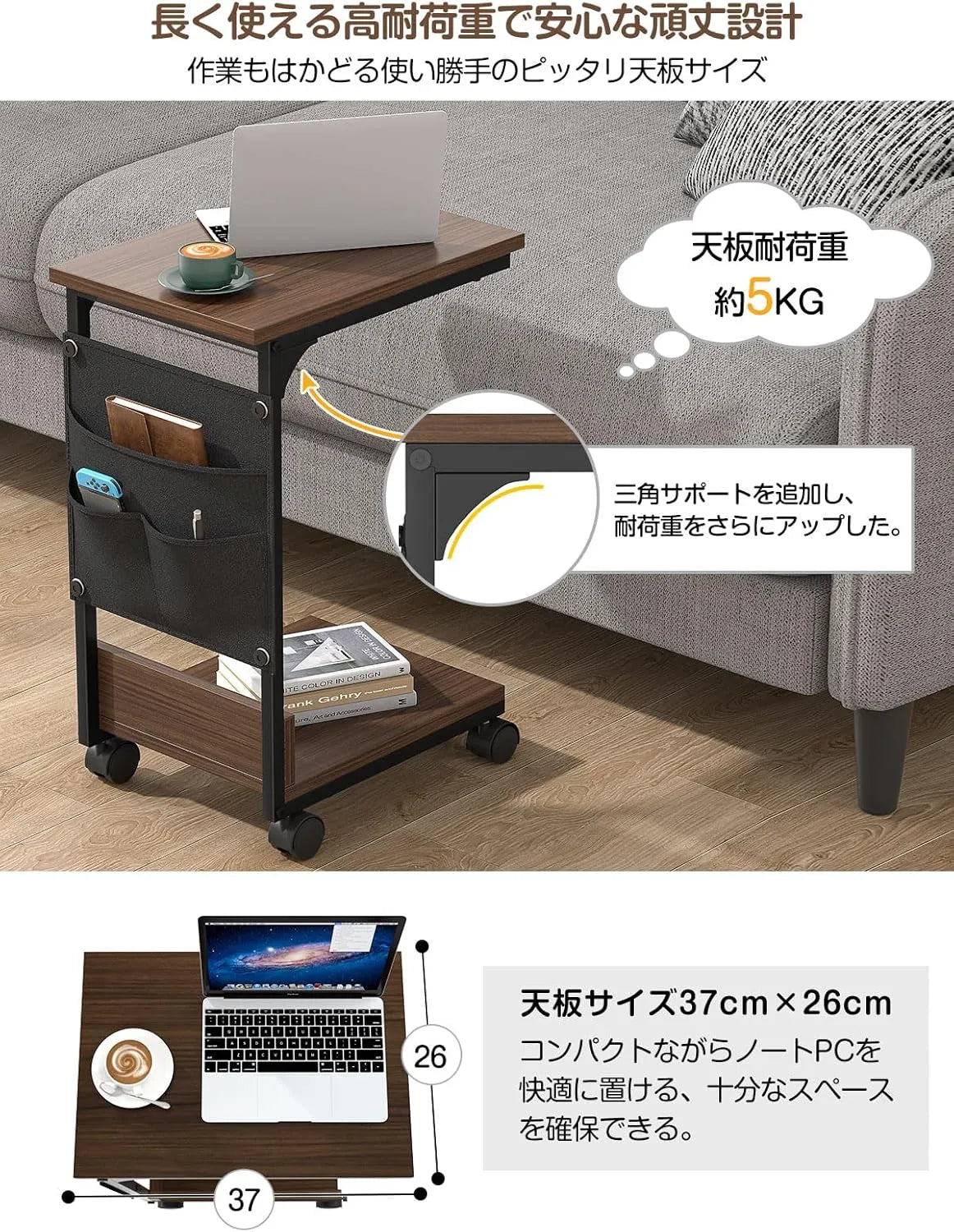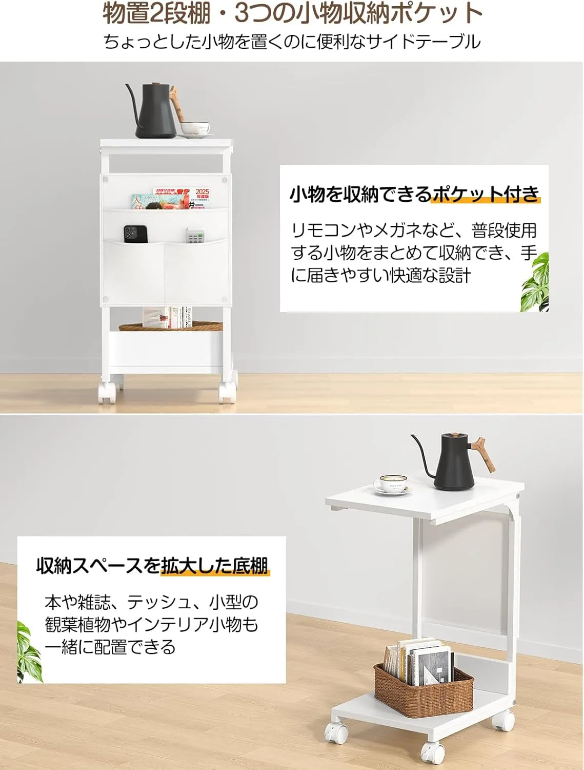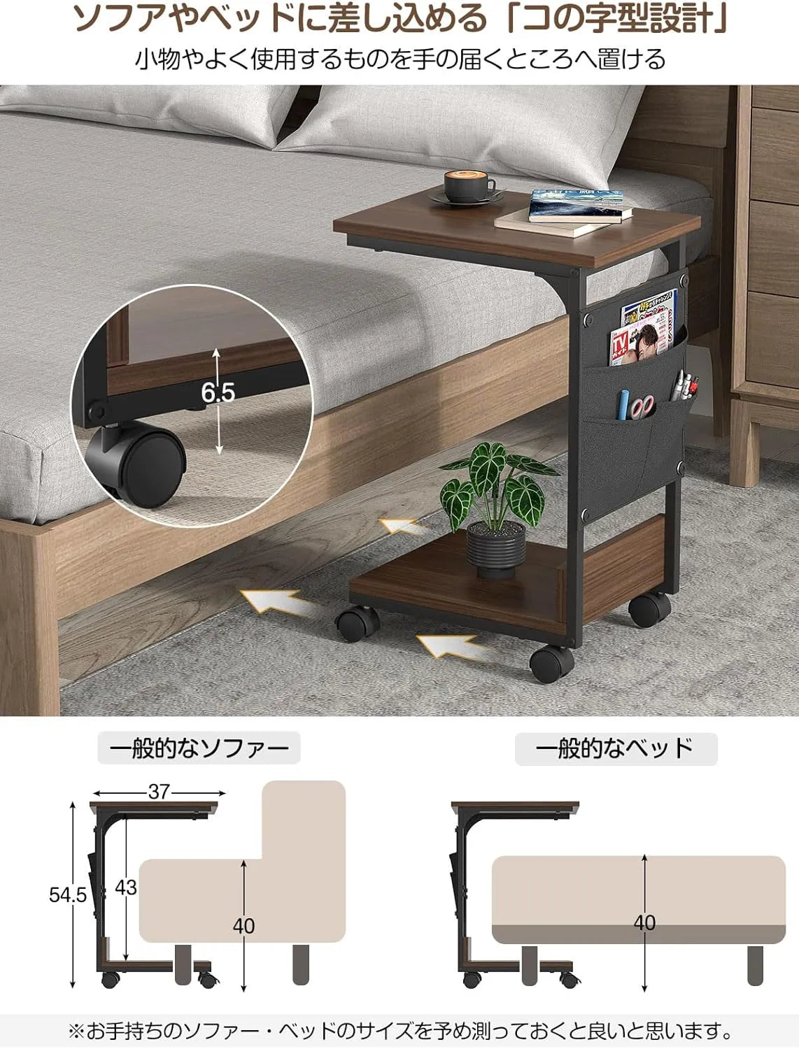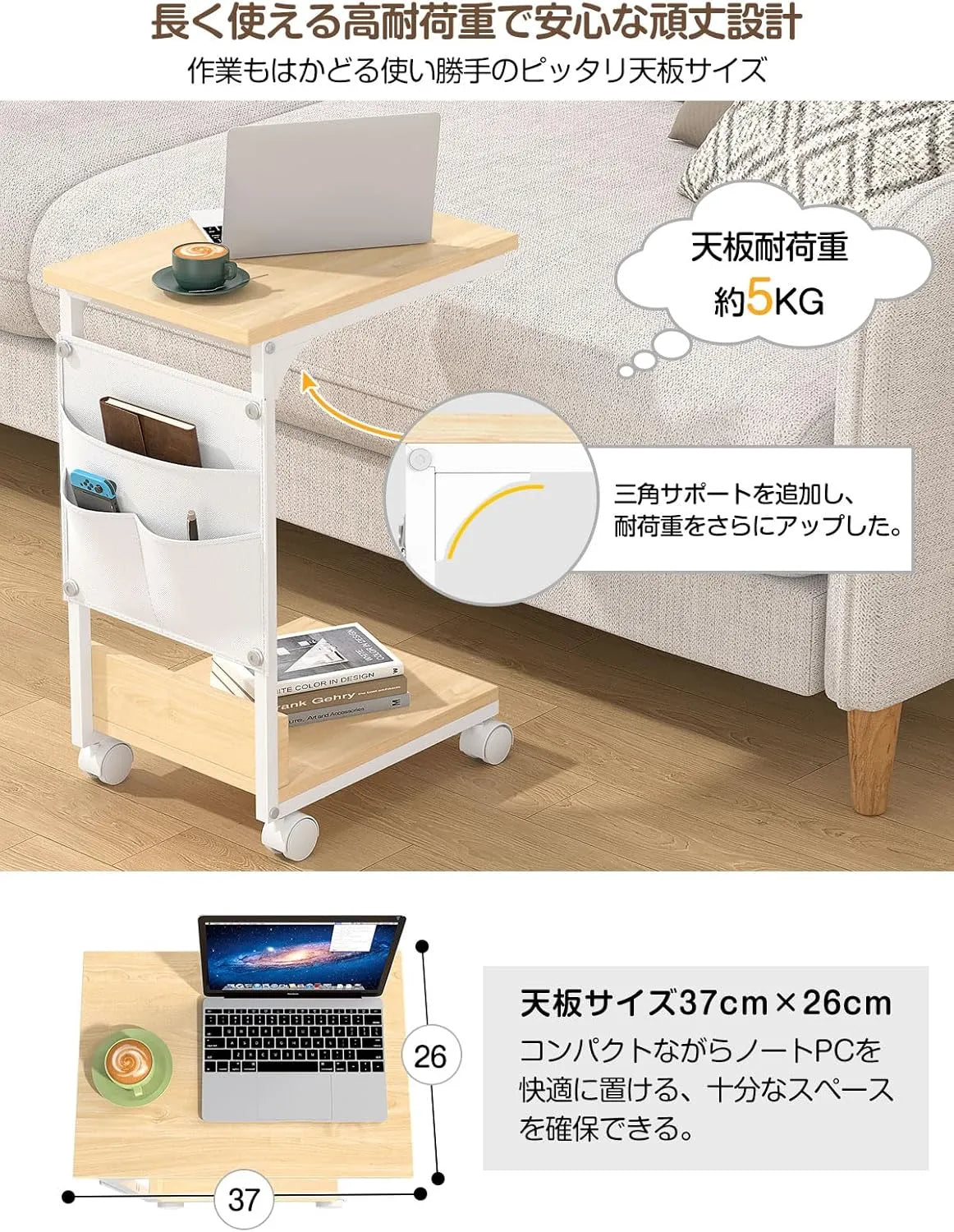 【収納袋付き】サイドテーブル ナイトテーブル|キャスター・アジャスター付き SH56W