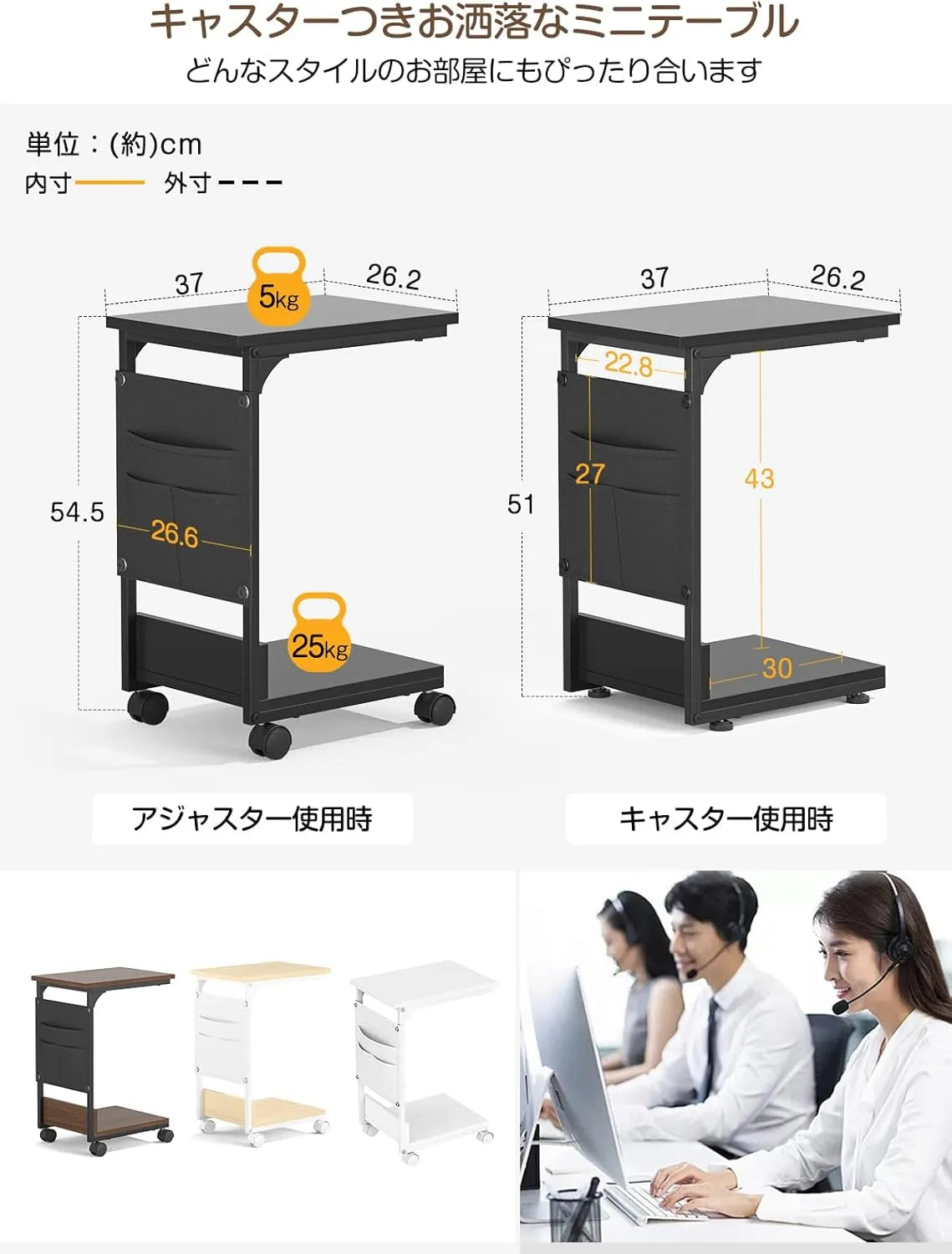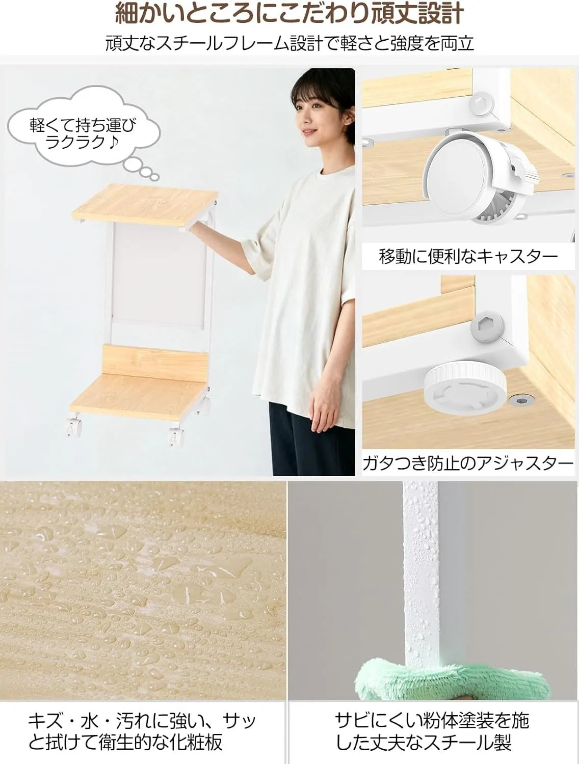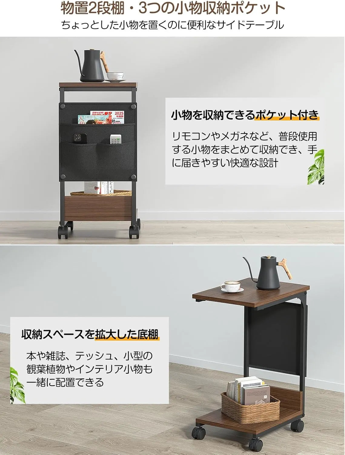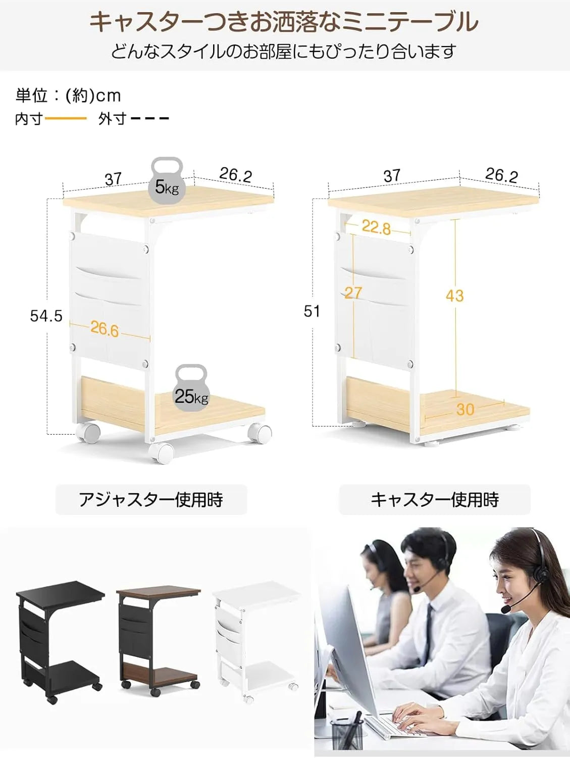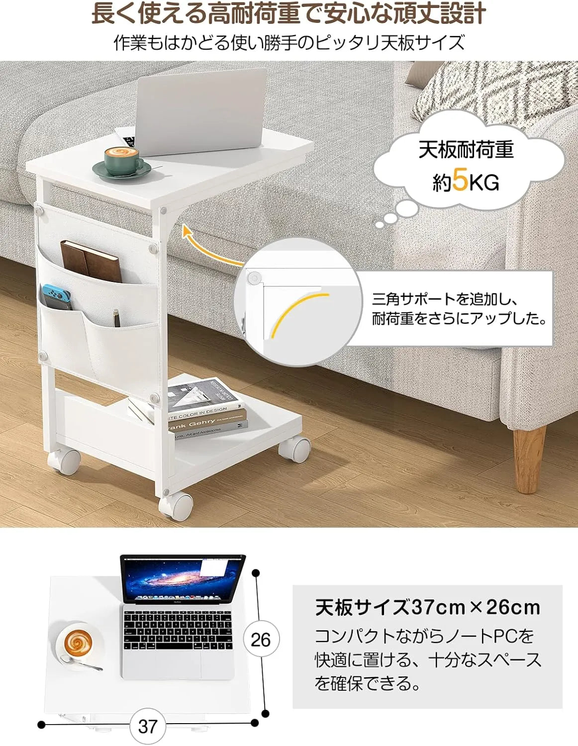 【収納袋付き】サイドテーブル ナイトテーブル|キャスター・アジャスター付き SH56W