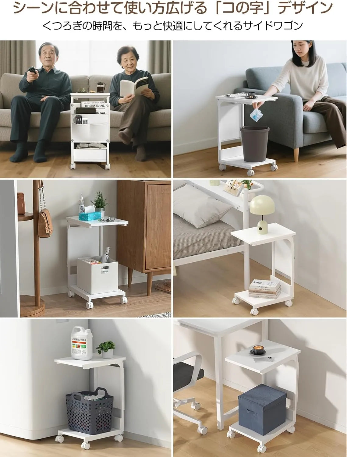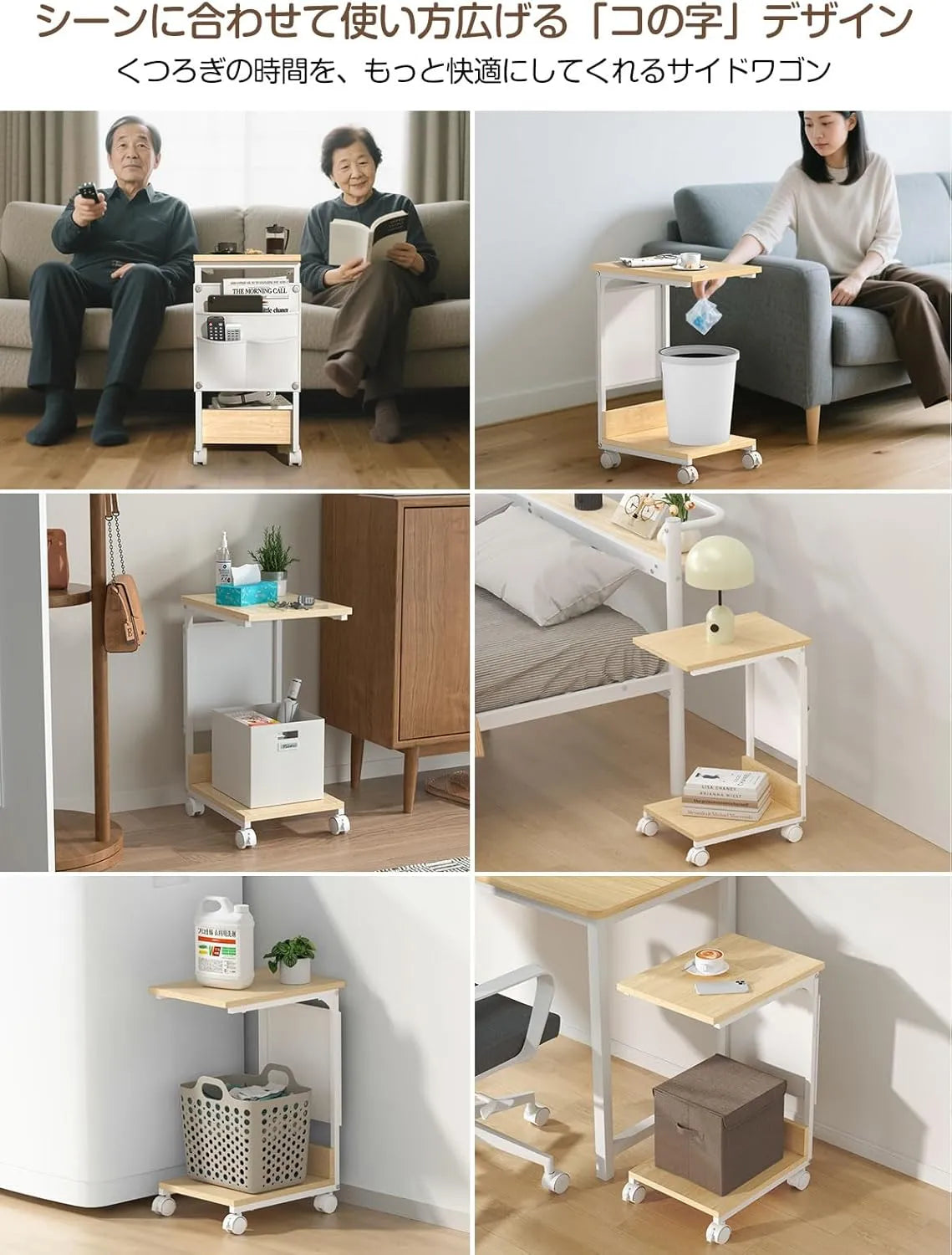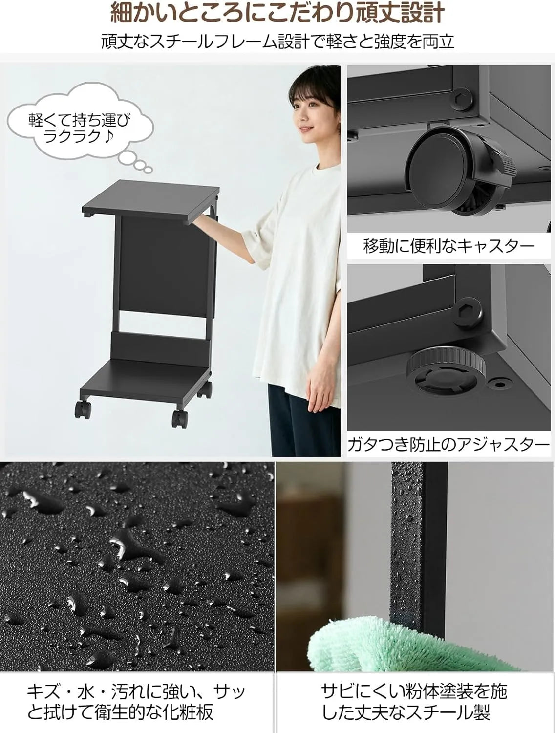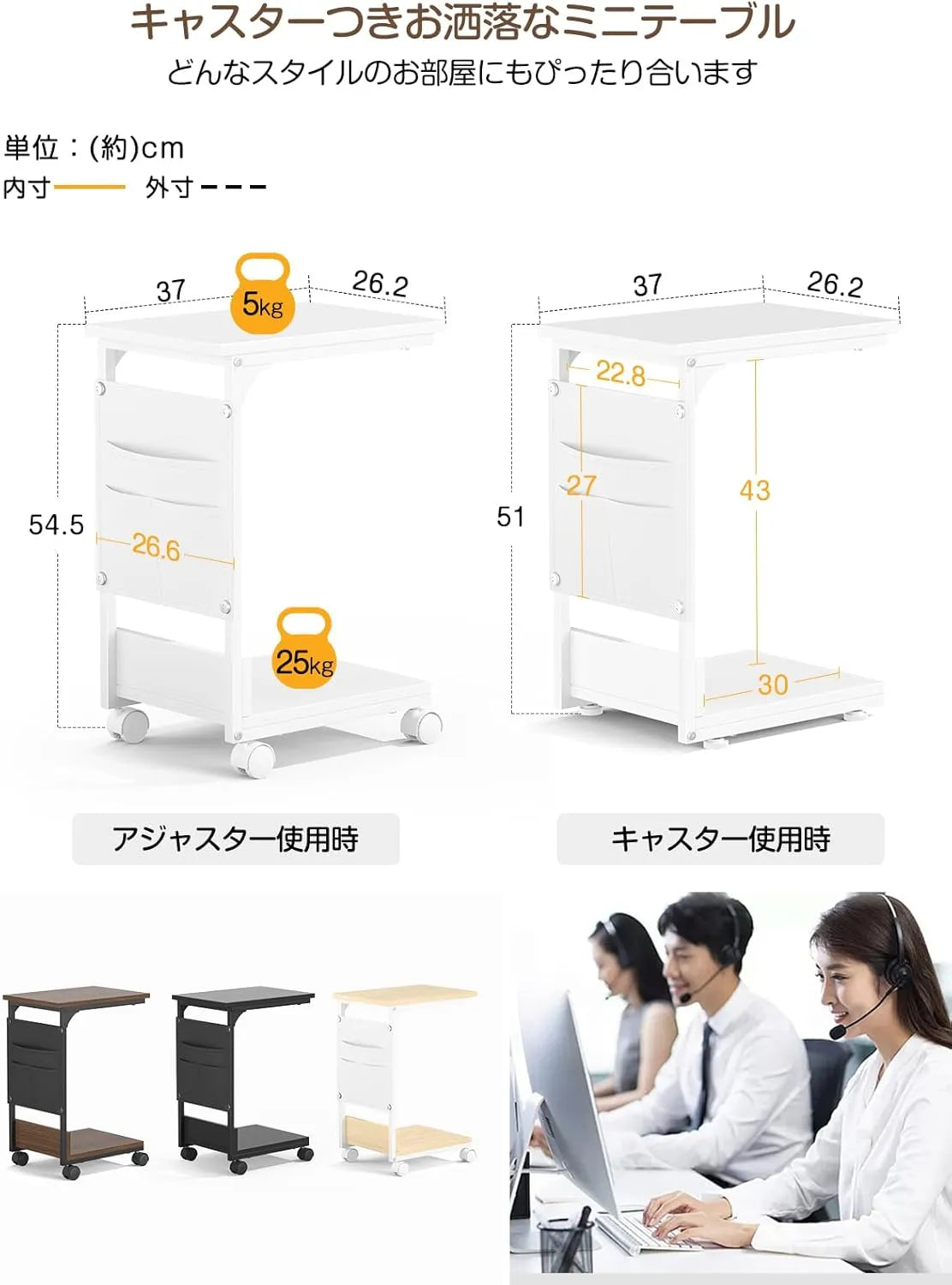 【収納袋付き】サイドテーブル ナイトテーブル|キャスター・アジャスター付き SH56W