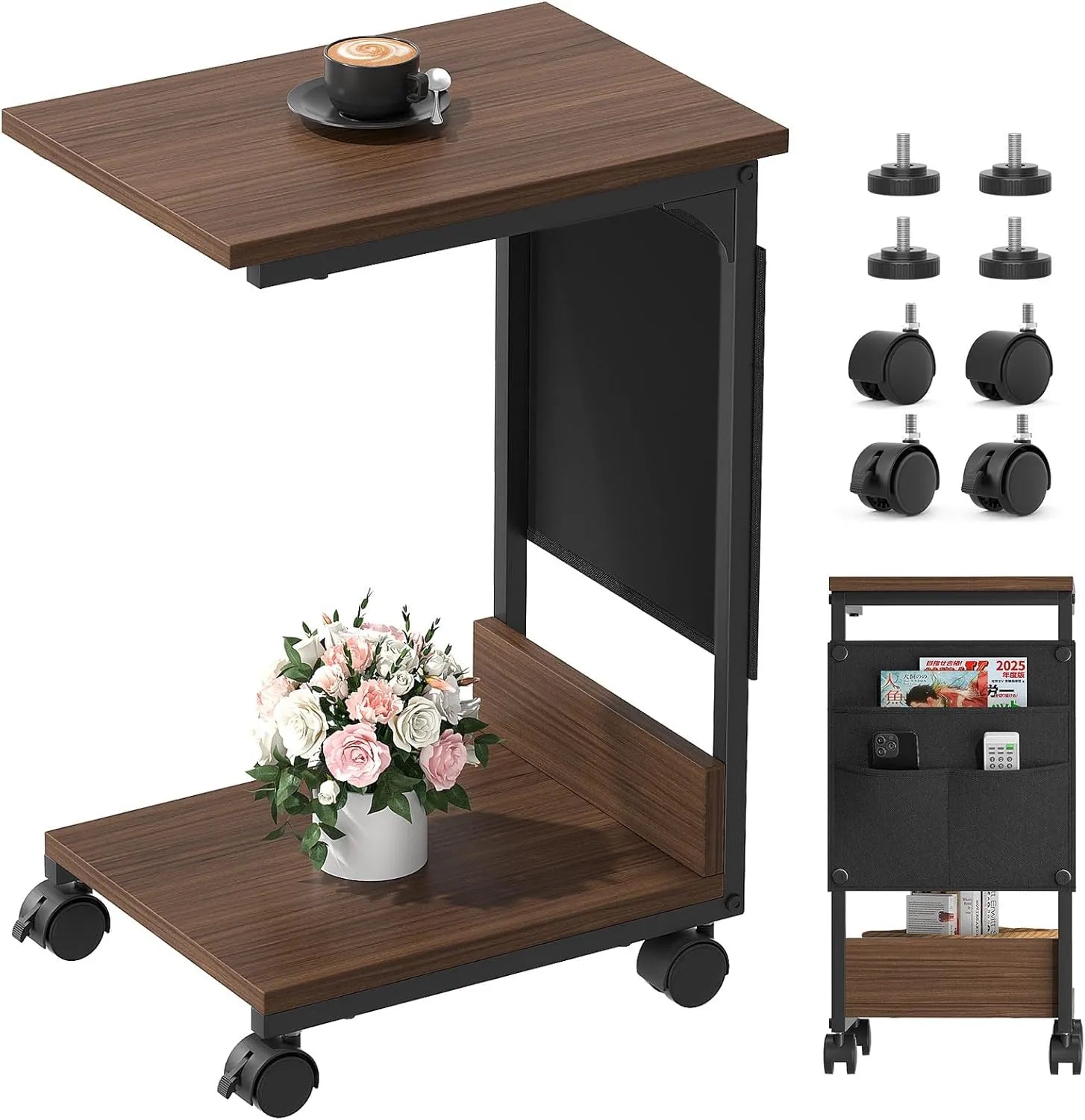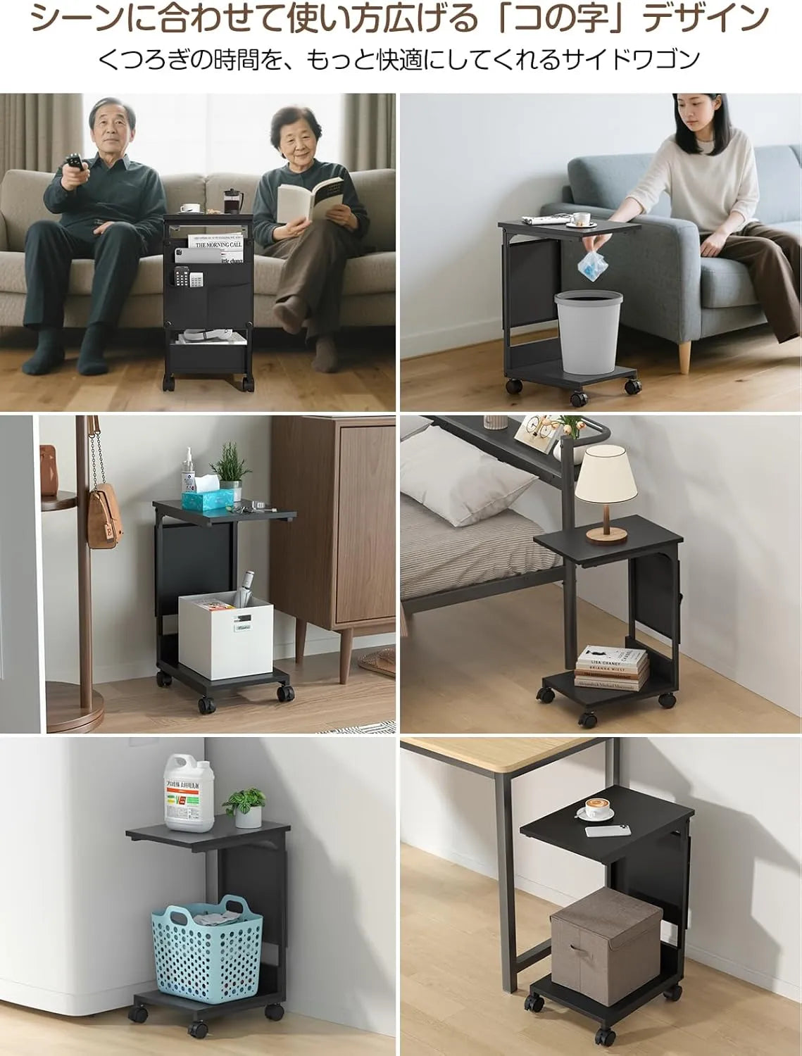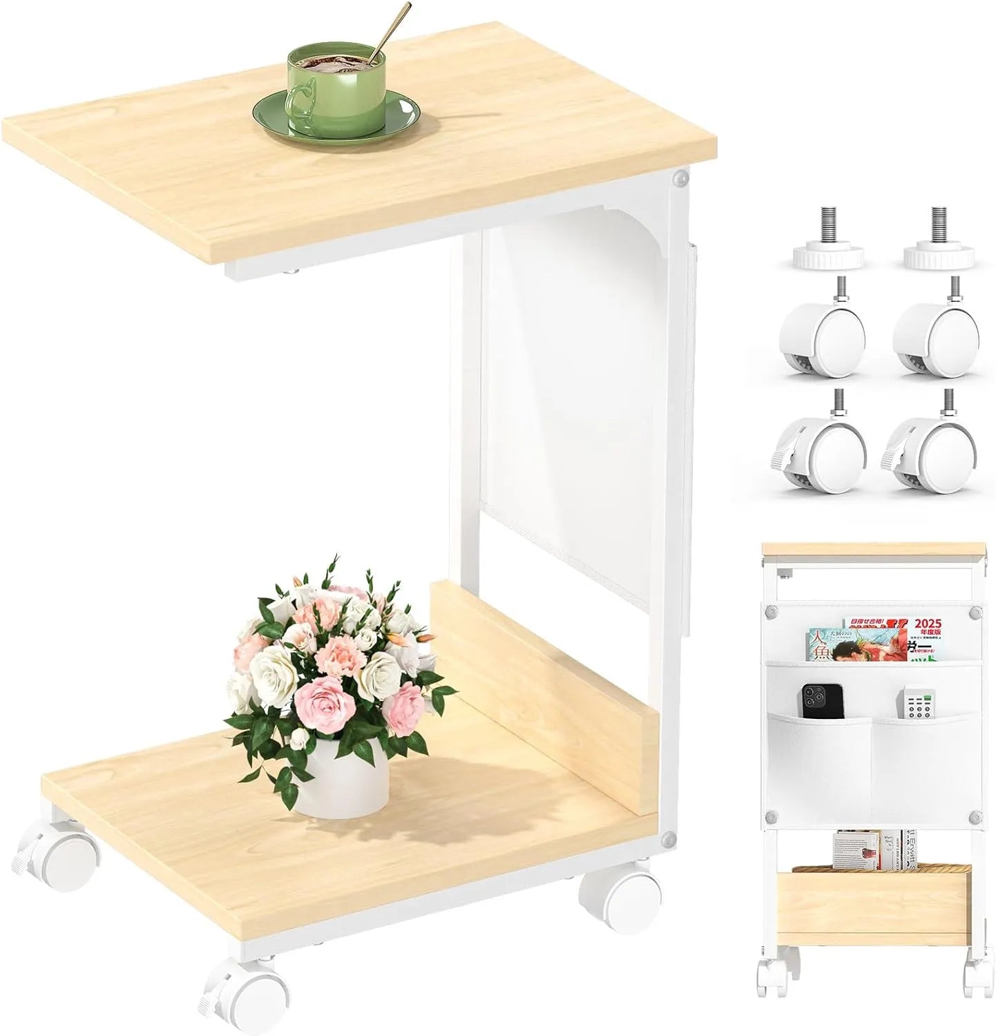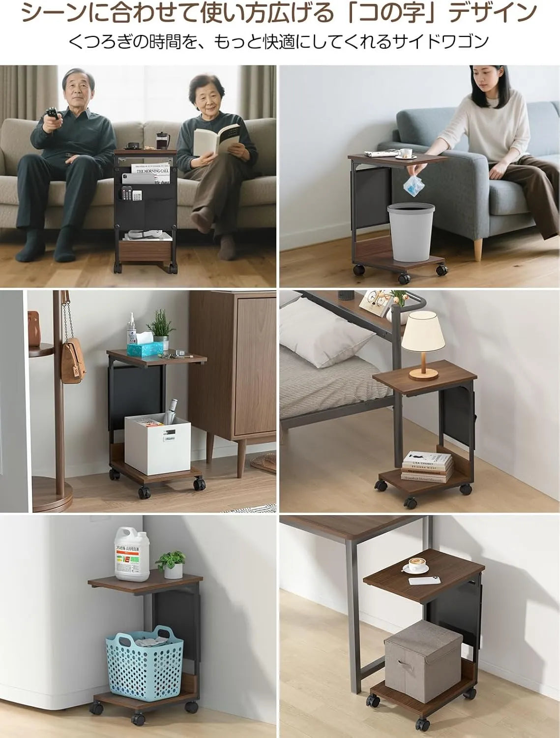 【収納袋付き】サイドテーブル ナイトテーブル|キャスター・アジャスター付き SH56W