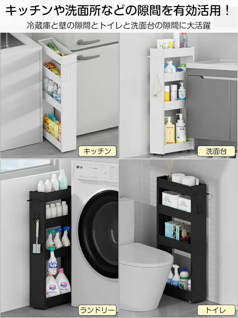 キッチンや洗面所、冷蔵庫と壁の間の隙間も無駄にしない!