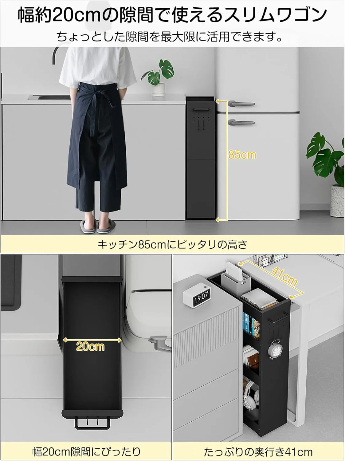 こちらは、幅20cmの隙間収納ワゴンです。家のちょっと大きめな隙間スペースを有効活用したい方は、こちらのアイテムをチェックしてください。